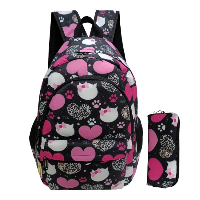 کیف مدرسه دخترانه مدل قلب و گربه heart cat با جامدادی (برند respina)