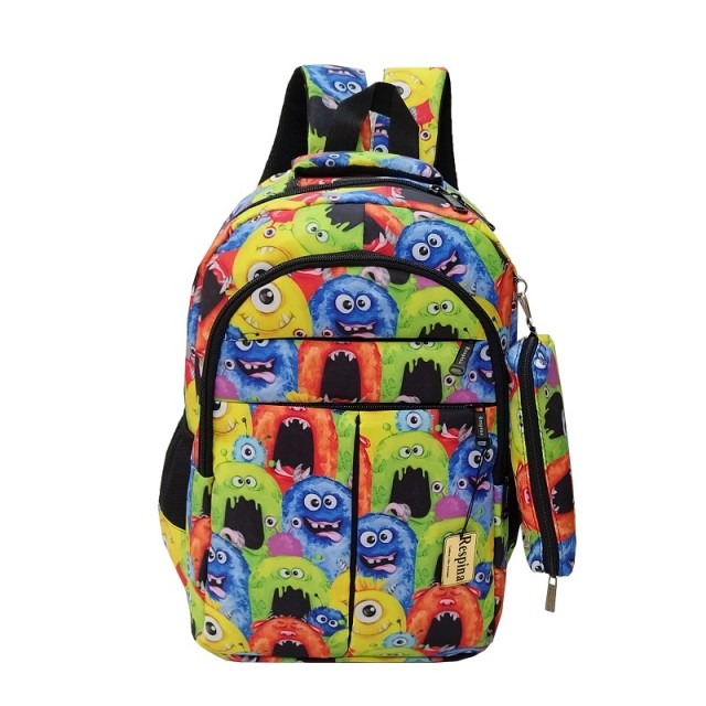 کوله پشتی مدرسه مدل هیولاها به همراه جامدادی (برند رسپینا)